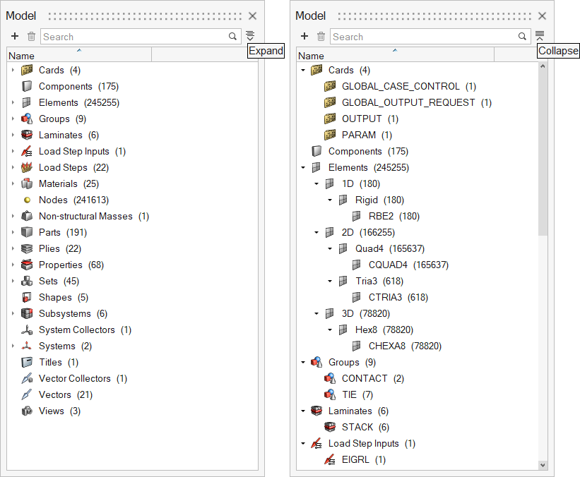 to expand and collapse, respectively.- When no item is selected, the option performs Expand All and Collapse All actions.