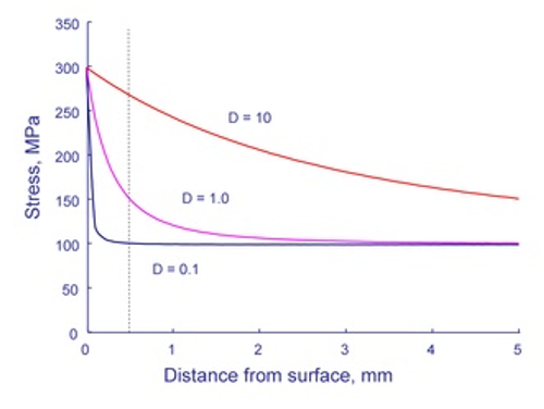 surface and stress at 1mm below the surface. The stress at 1mm below surface