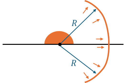 Figure 8. Ishape = 2: Spherical propagation (ground ignored)