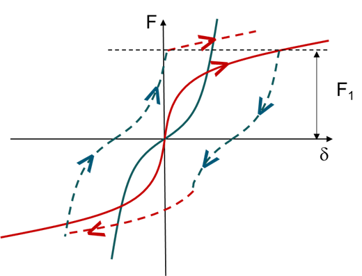Comparing Figure 10 and Figure 11, shows that the function only effects the residual displacement and the shape of unloading curve. The shape of unloading curve is controlled by stiffness and (unloading start displacement).