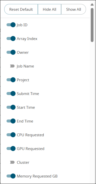 You can perform the following actions to customize the summary table such as Job Table and Nodes/Tasker Table: