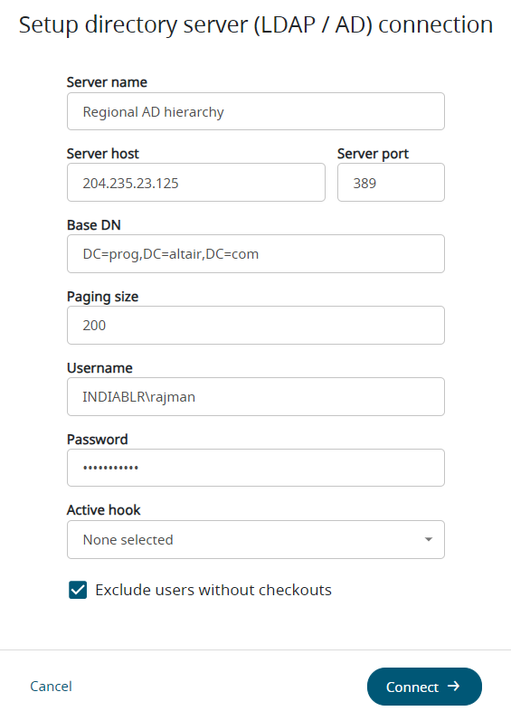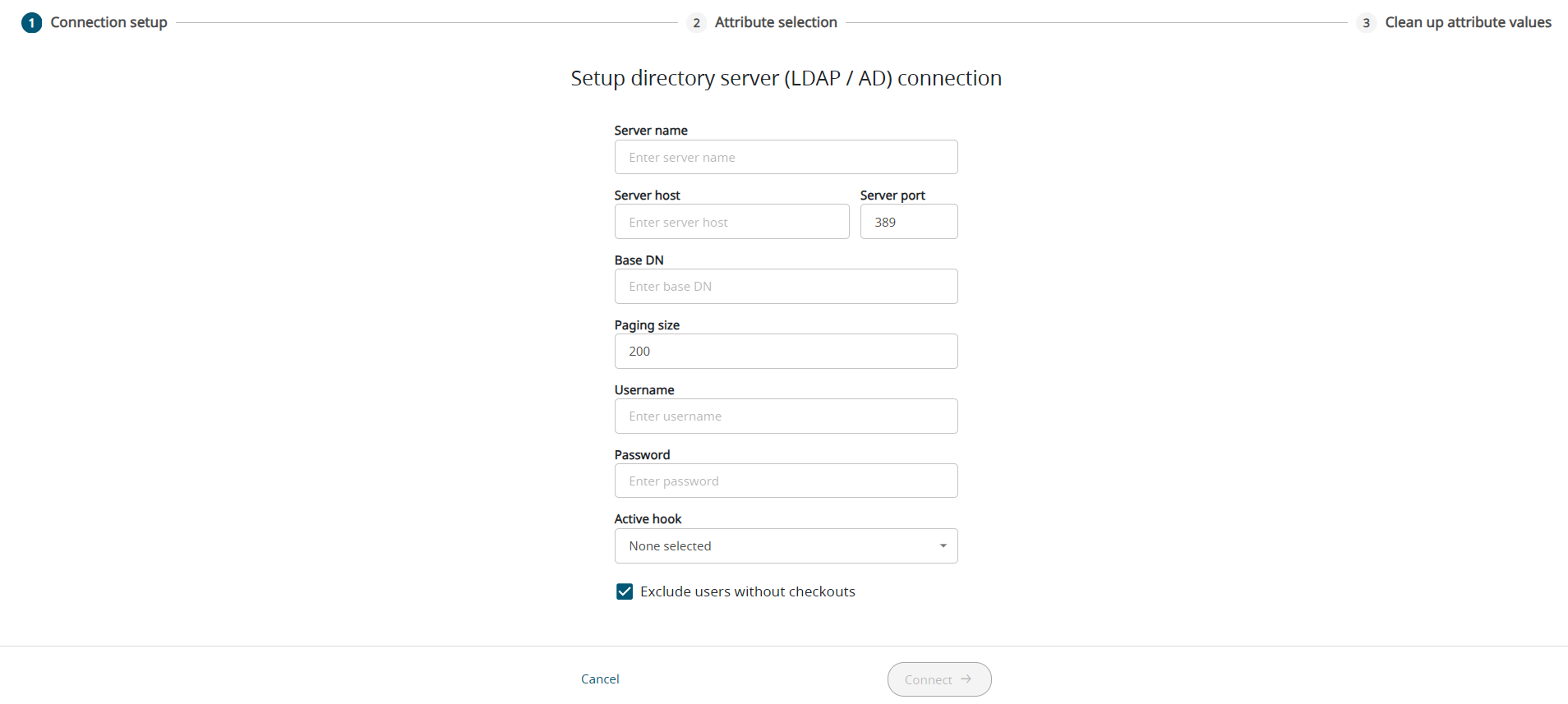 Setup directory server (LDAP / AD) connection is displayed.
