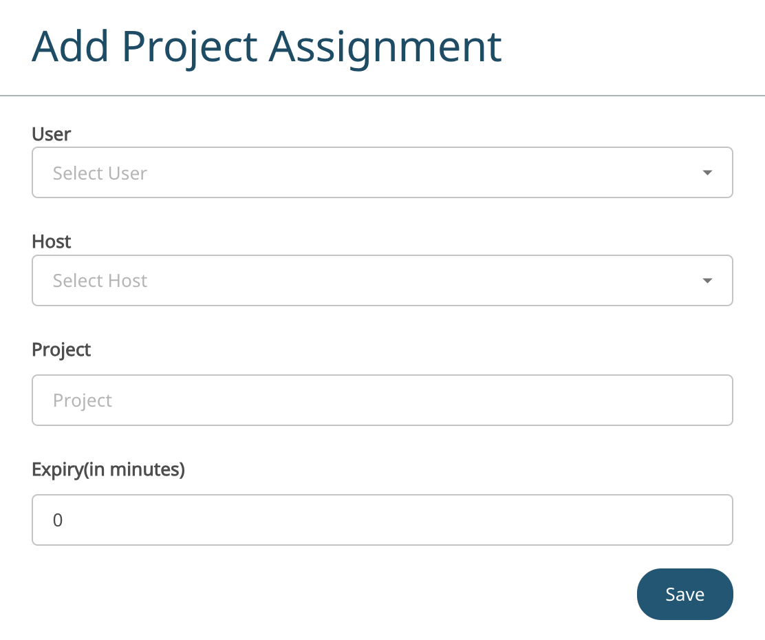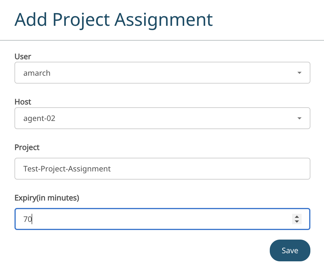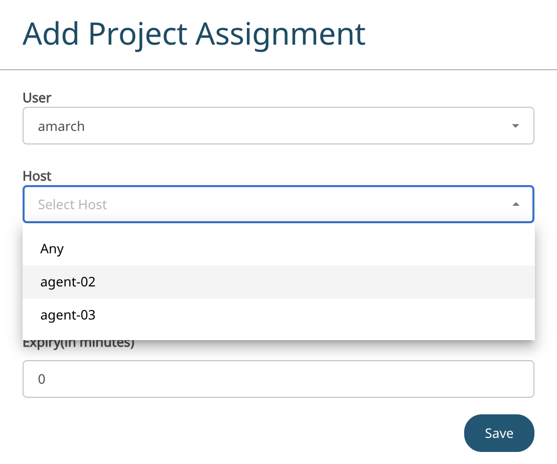 The Host machine is displayed based on the selected user.By default, all hosts are considered for the project assignment. If user and host machine is selected, then only that combination will be considered for the project assignment.