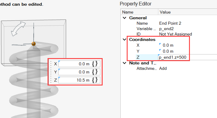 The other end of the spring damper End Point 2 is created 0.5 m in the Z direction