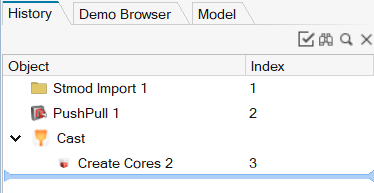 When you create, modify, move, or delete geometry in your model, or group parts together in the Model Browser, Inspire records the action in your model’s construction history.