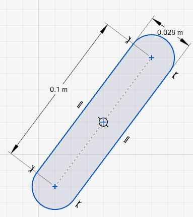 클릭하여 슬롯의 끝점을 설정하고, 클릭하여 슬롯 중앙의 반경을 설정한 다음, 클릭하여 슬롯의 너비를 설정합니다. 팁: 슬롯으로 치수 구속조건을 자동으로 생성하려면 치수 작성 확인란을 선택합니다.