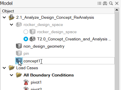 - 在模型浏览器中,右键点击 concept2 副本,选择重命名并将副本重命名为 concept3。