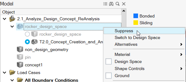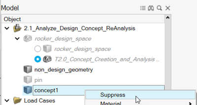 - 在模型浏览器中,右键点击 concept2 并选择抑制。