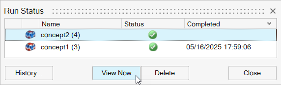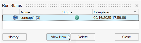 当运行结束后,选择“运行状态”窗口中的运行,并点击现在查看以查看结果。