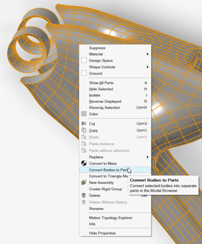 如模型浏览器所示,PolyNURBS 会被转换成多个独立的零件。