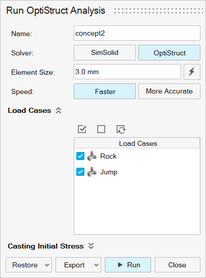 - 选择 OptiStruct 作为求解器。