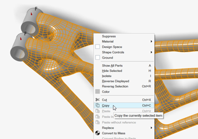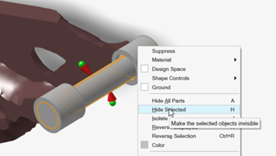 在模型浏览器中,被抑制的零件会以灰色斜体显示。抑制某个零件可防止将其纳入分析。所有原始荷载和支撑都保留在模型中,因为它们被应用于非设计空间。 -