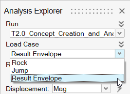 在分析浏览器中,选择载荷工况下拉菜单中的结果封套。