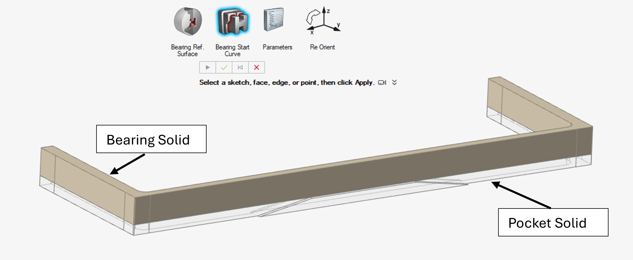 Use this tool to extract the Bearing Start curve, which varies in the Z direction and is part of the Pocket geometry.