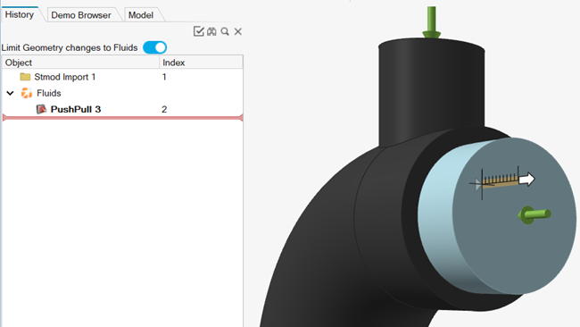 For example, if you used Push/Pull on a Fluids model, selecting Limit Geometry changes to Fluids would ensure the push-pull operation is visible only in the Fluids profile.