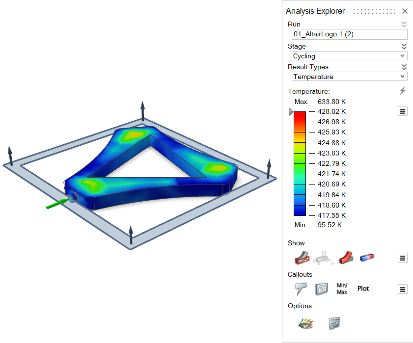 - Optional: Enable the various Callouts options to show analysis results at a point of interest on your model. The callout values apply to the currently selected run.