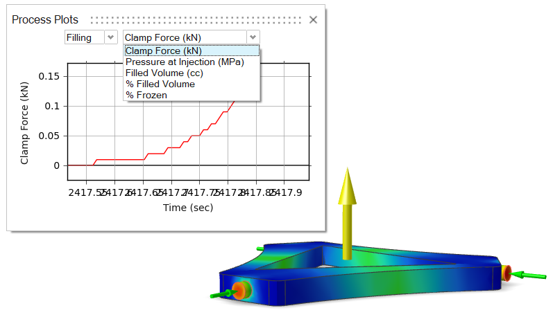 Pressure | Review pressures inside the mold cavity produced during the filling