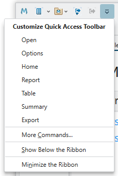 Click the Quick Access Toolbar dropdown to display the toolbar menu.