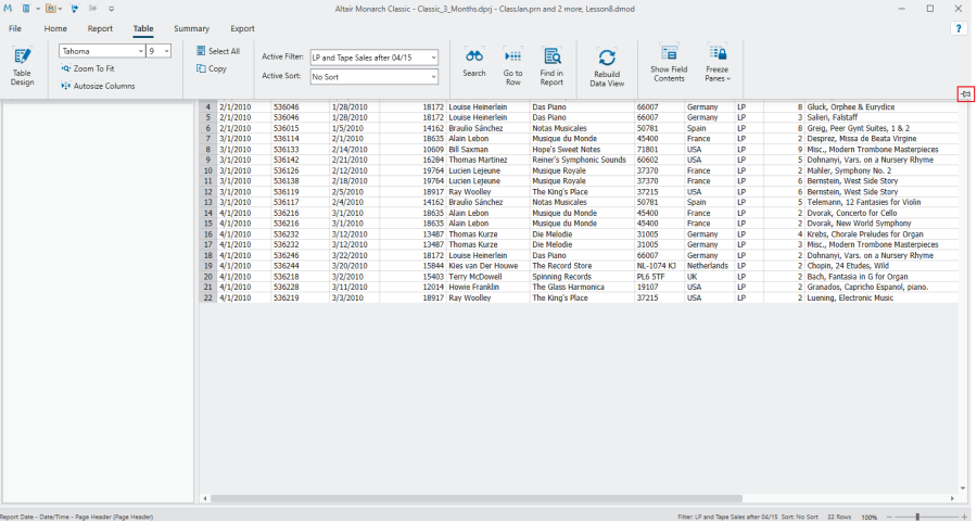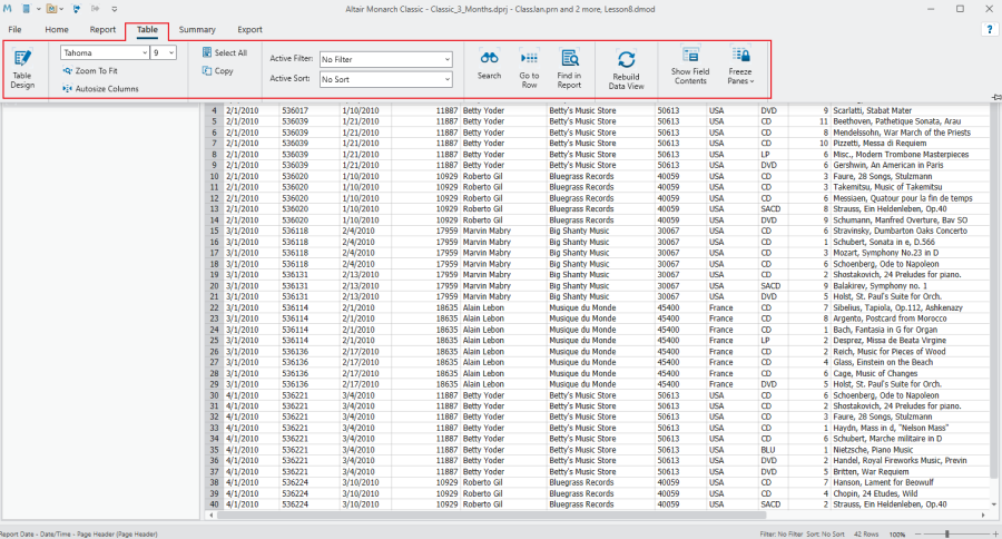 To use the ribbon, click the tab that corresponds to the Monarch Classic view you want to work with. The ribbon displays tools specific to the view you have selected.