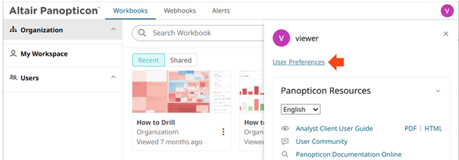 You can set your preferred settings of the view and sort order of workbooks, webhooks, and alerts.