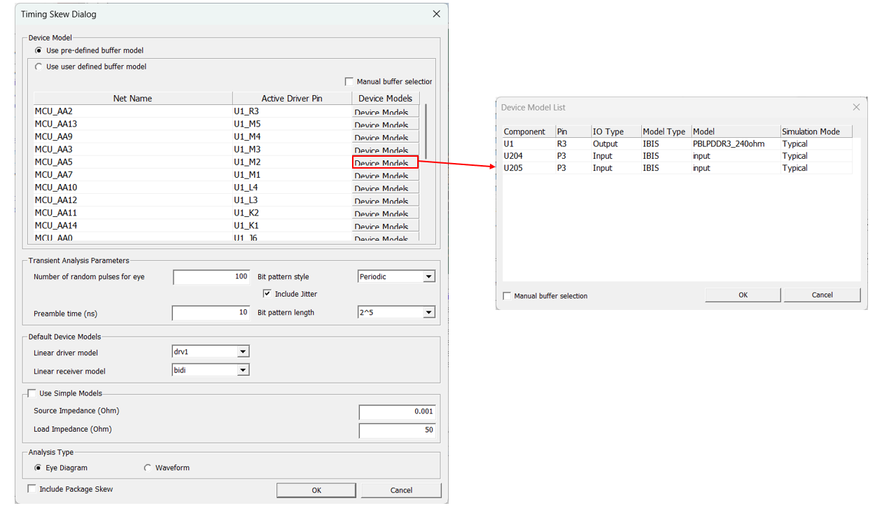 Analyze Options: You can assign driver/receiver buffer simulation model,