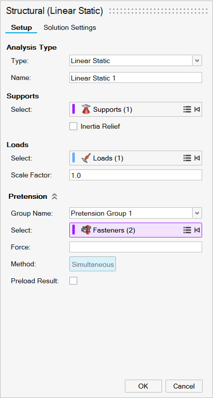 additional results considering only fastener pretension.Note: A linear static load is limited to a single pretension group.