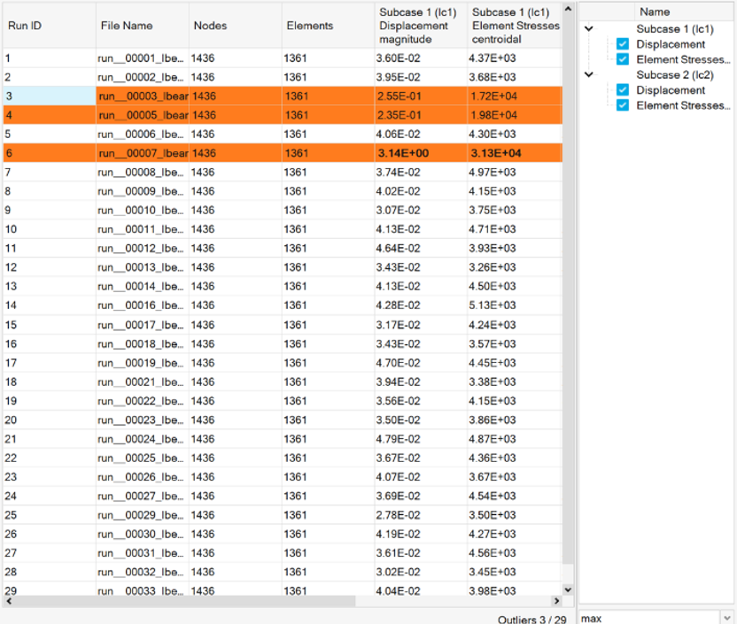 Inclusion of outliers can introduce noise and depreciate the prediction accuracy. Hence, the available training data needs to be carefully curated by excluding the outliers. This is a manual process but tools available within Simlab (dataset outlier detection) and HyperStudy (parallel plots, 3D visualization, KPI tracking) can be used. Outliers can be identified using multiple criteria. These include but are not limited to: