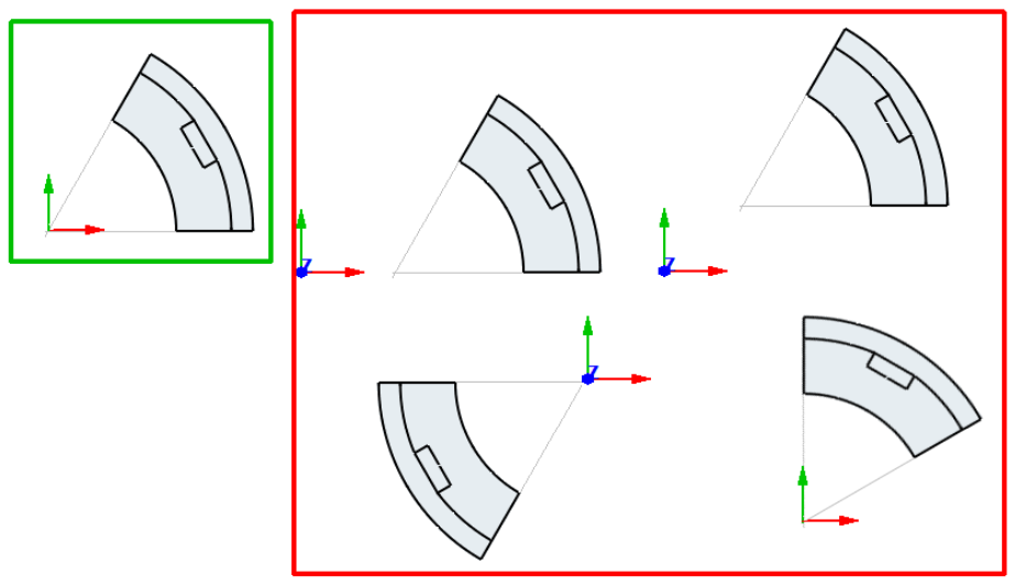 When looking at the relative position between the coordinate system and the part, only case among the following cases is valid: