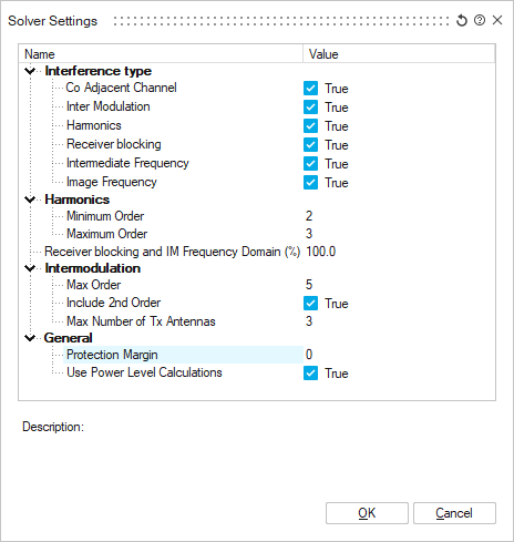 - Specify the protection margin in dB which would be the difference between the desired signals power level and the level of interfering signals.