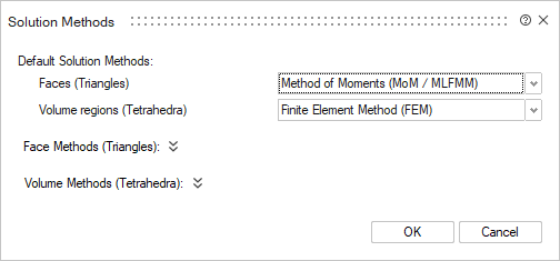The Solution Methods dialog provides the options to specify the solution methods for the model.