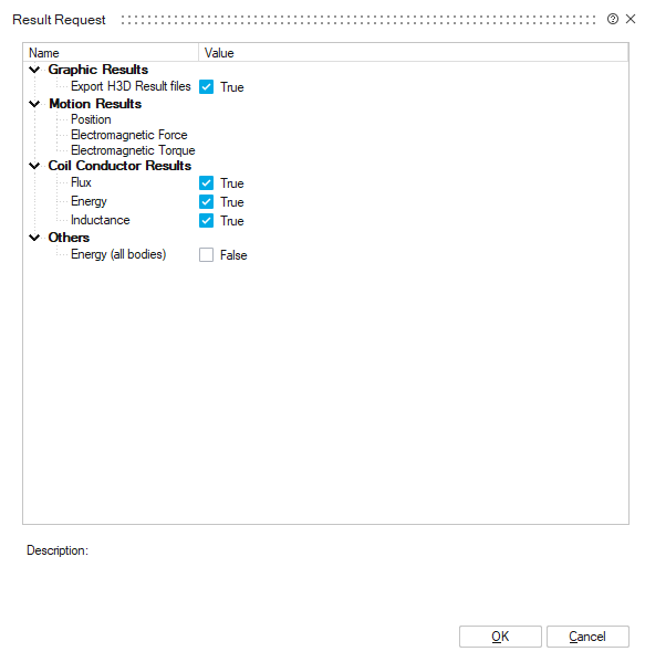 Export H3D Result files: this option has been added to support the exports or not of the graphical result contours for Magnetostatic Integral and AC Supplied Conductors. This option can help to save time in cases of Design of Experiments, when it is only interesting to see global values. This option is enabled by default.