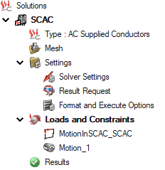 → The Motion is created and appears in the Solution Browser (2nd tab) in the node Loads and Constraints