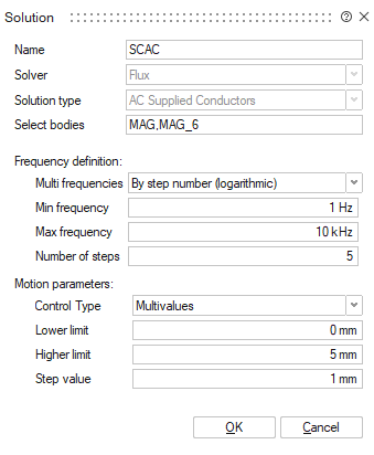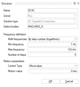 The solution box contains now Motion parameters inputs with by default Monovalue control type set to 0.