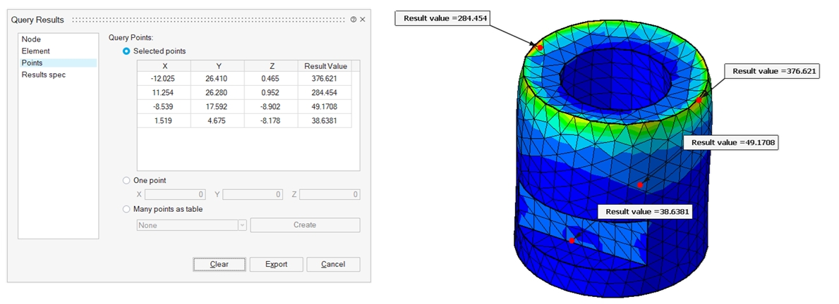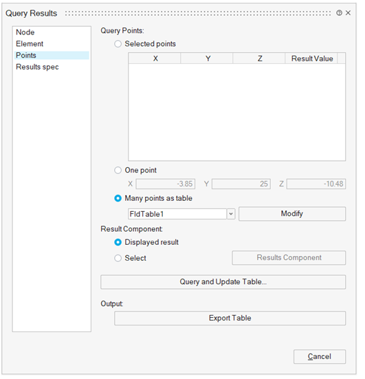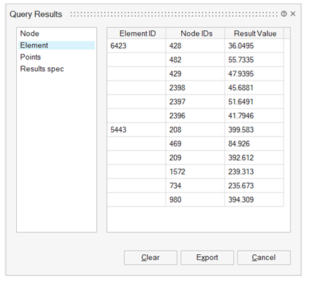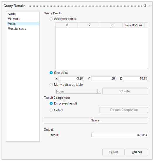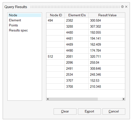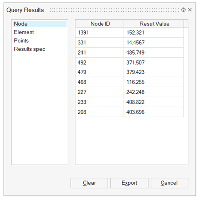The Query Result tool allows you to inspect and export numerical result values for selected entities such as nodes, elements, or points.