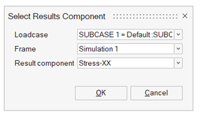 Once the tool is active, you can select entities such as nodes, elements, or points in the graphics area. Their corresponding result values—based on the settings currently defined in the Result panel (such as simulation step or component)—are displayed in a table within the dialog.