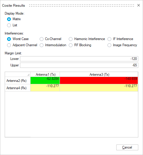 The Co-site interference solution is used to calculate the interference of various receiver and transmitter systems has on each other. The solution also has the ability to add or remove for example a filter, circulator or cable to the transmitter or receiver and analyse the effect on the interference.