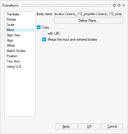 Copy and mirror half of the aircraft to create a complete and symmetrical model of the aircraft.