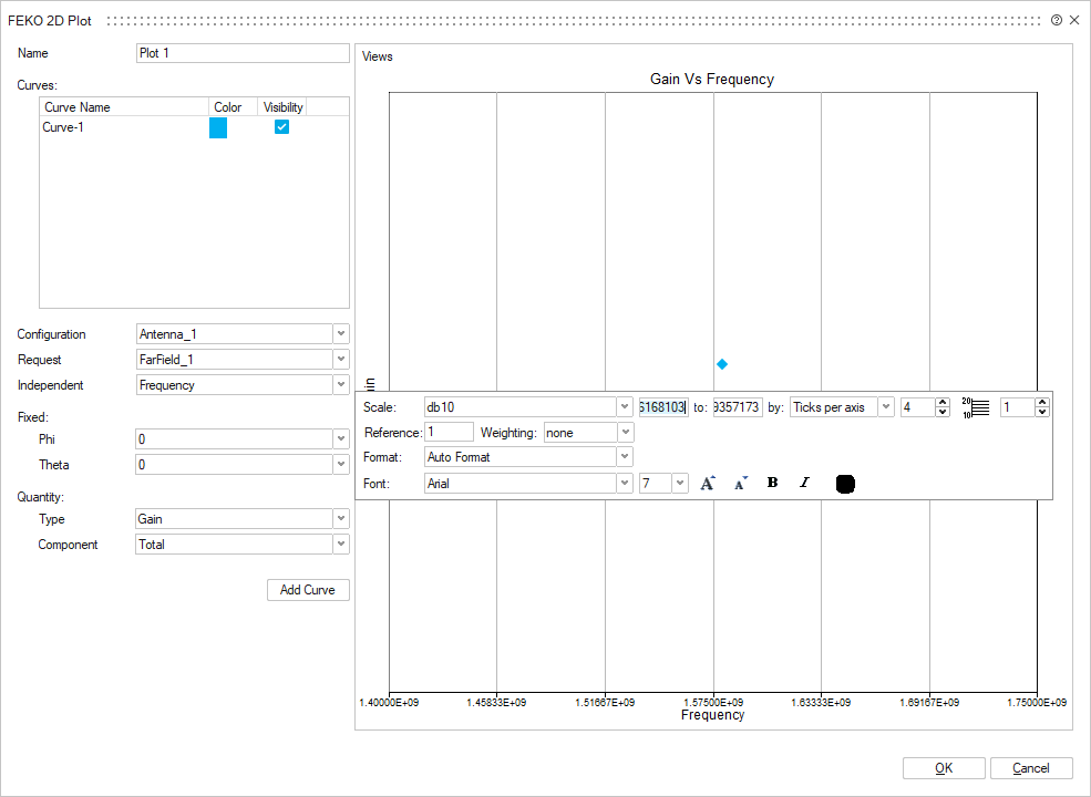 To view the y-axis in dB, right-click on the y-axis and, from the right-click