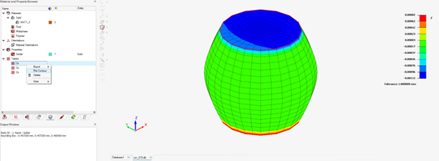 In the above figure shown, "DX", “DY”,”DZ” is a nodal input variable where each node in the model have different value. For the selected dataset, the DX variable is displayed as contour visualization.