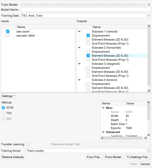 In this tutorial, you will use custom nodal input variables (such as varying nodal and elemental forces, boundary loads, and so on) for training.