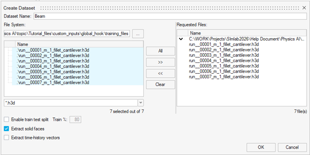 Note:The save location for the project contains all files created by PhysicsAI, but the original files used for training do not need to reside in the project folder.