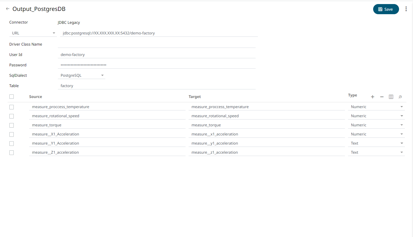 - Select JDBC Legacy in the Output section of the drop-down list.