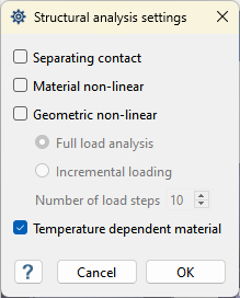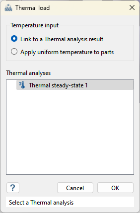 - In the Thermal steady state setup dialog, accept the default temperature as 0 and click OK.