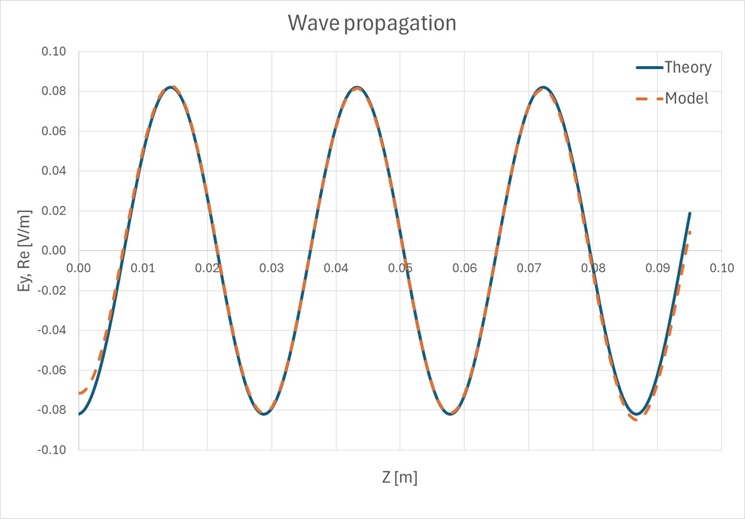 テスト番号VE03充填された導波管内における、基本モード波の伝搬