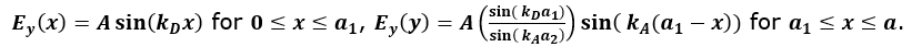 Figure 7. 上の図のラインに沿った理論上およびモデル化された電界分布の比較