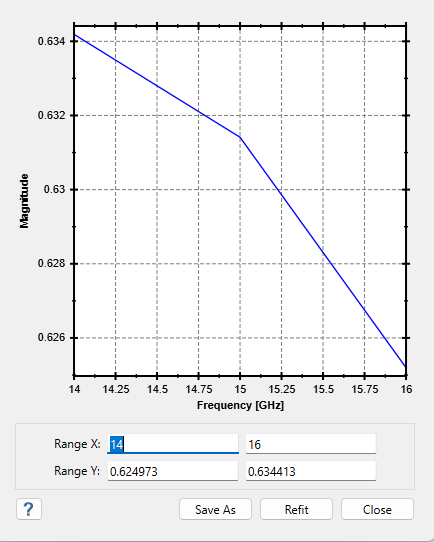 - 在设置对话框中,输入下限 [Hz] 为 14e9,上限 [Hz] 为 16e9。