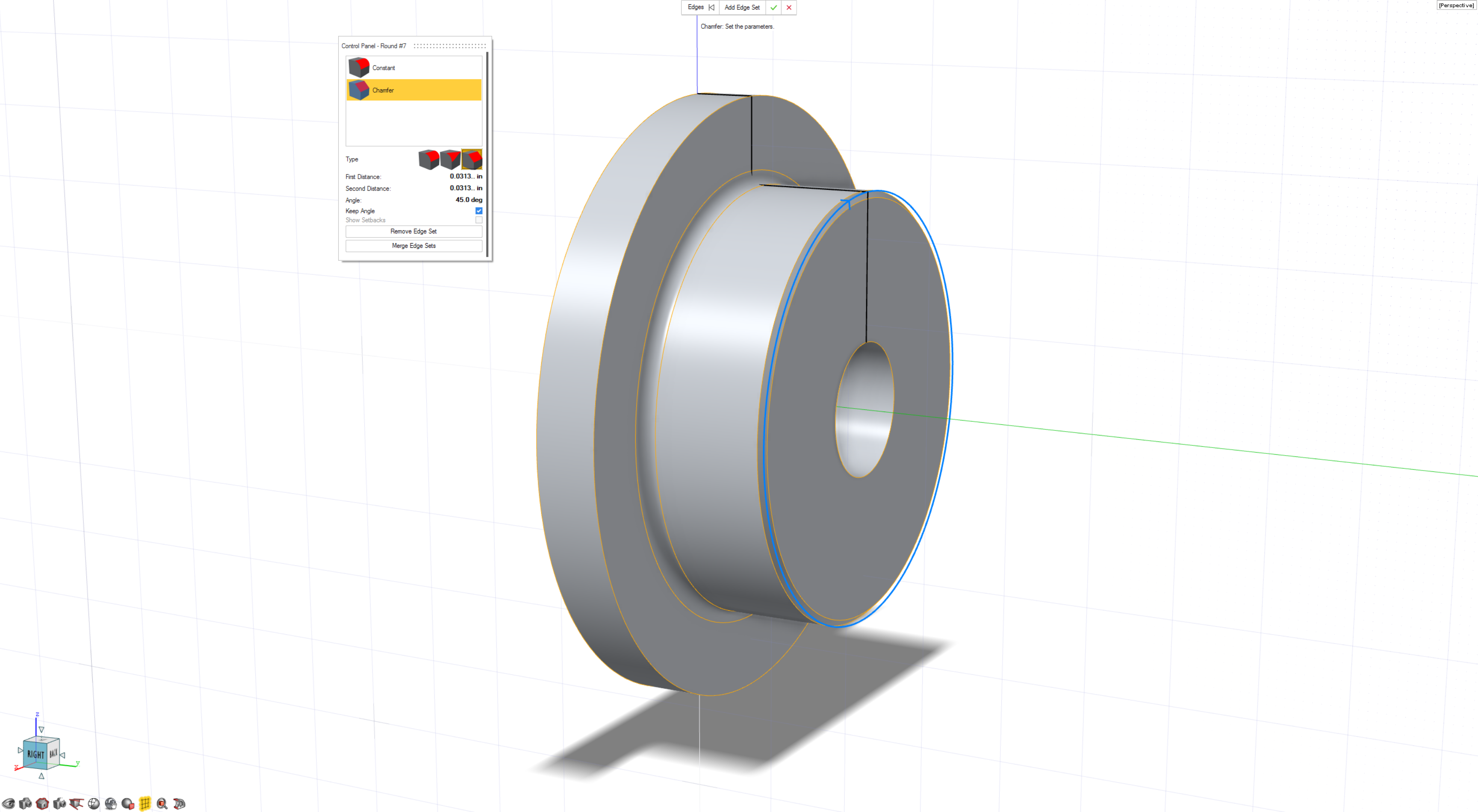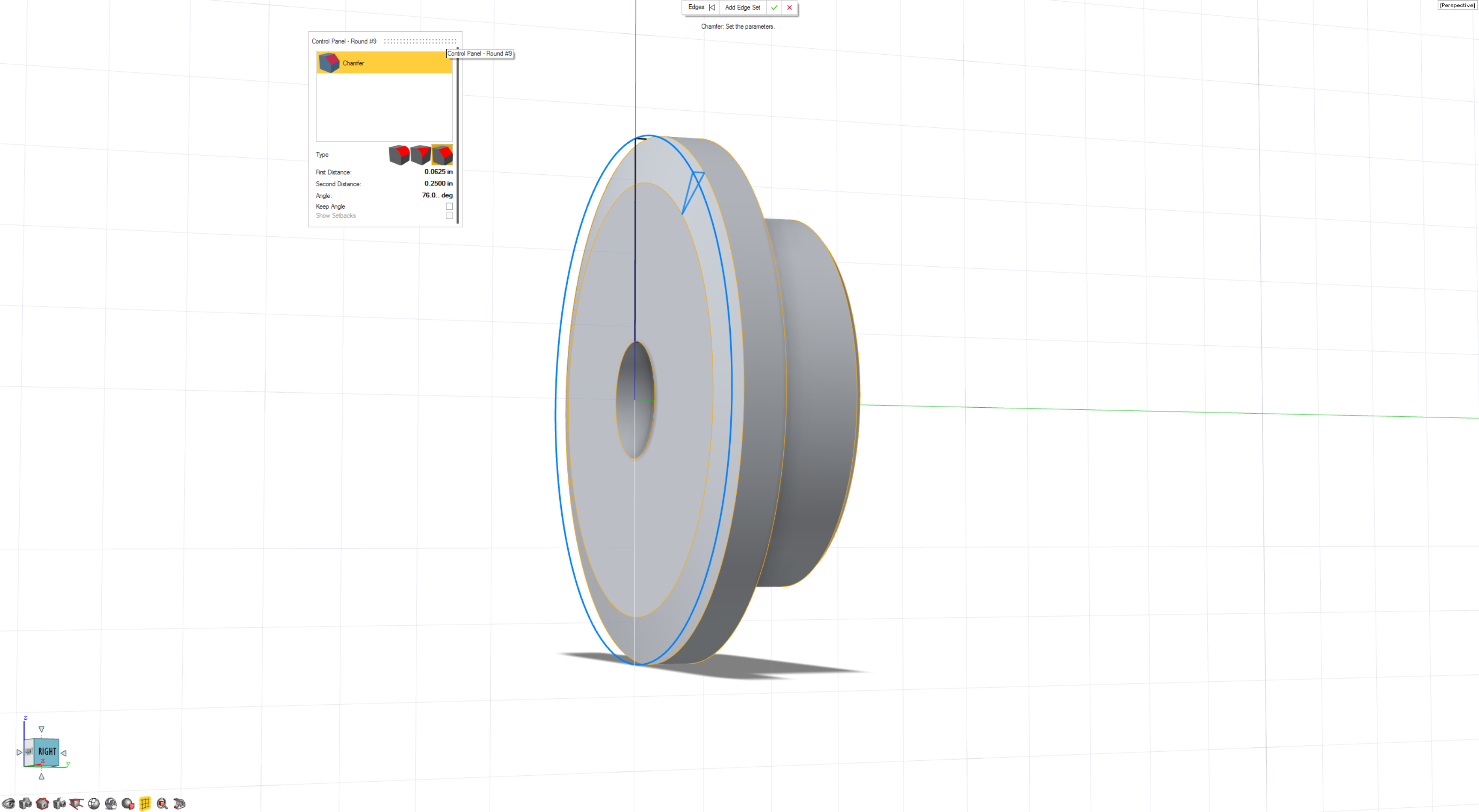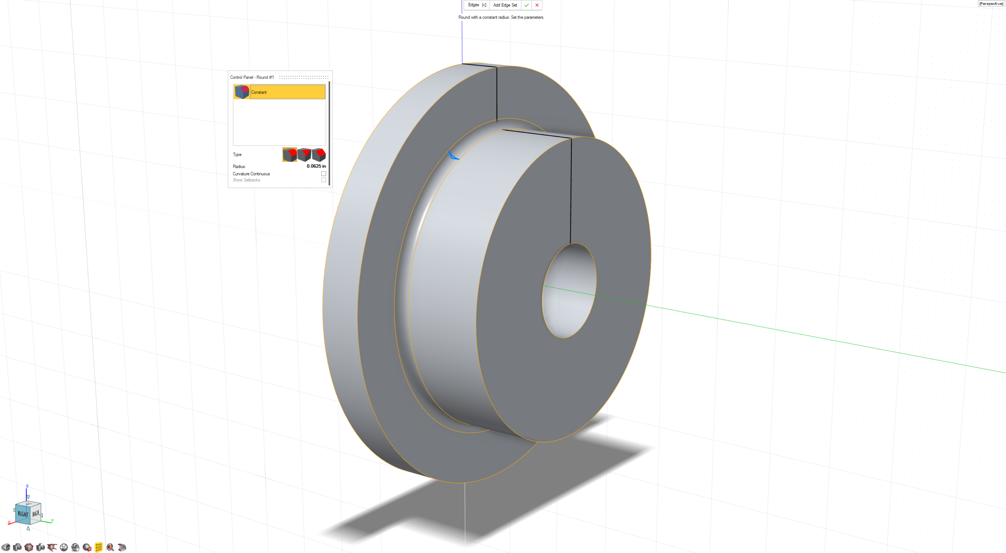 - スプロケット本体の外側エッジを選択し、半径0.03125インチを追加します。