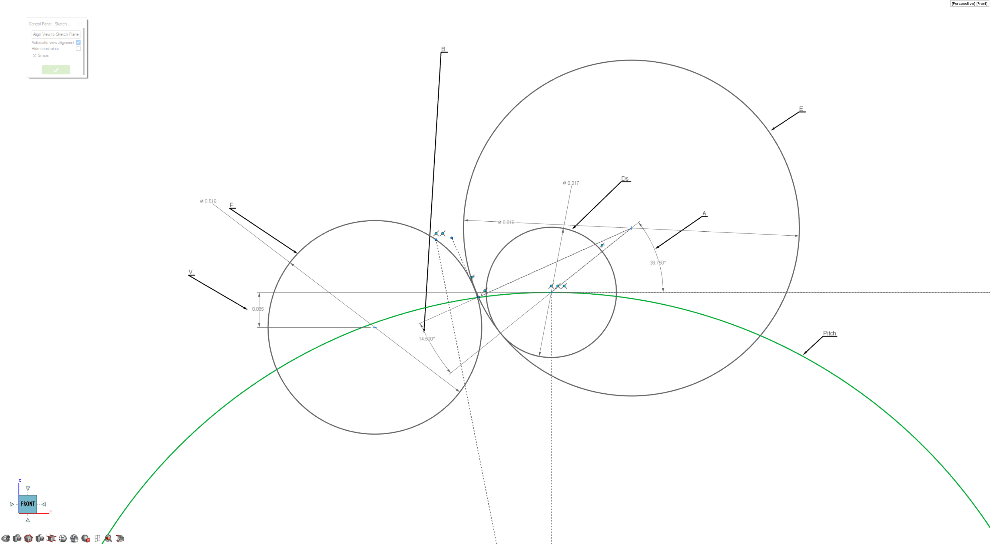 歯のプロファイルは単純ですが、スケッチにレイアウトする必要がある多くのエンティティと寸法があります。