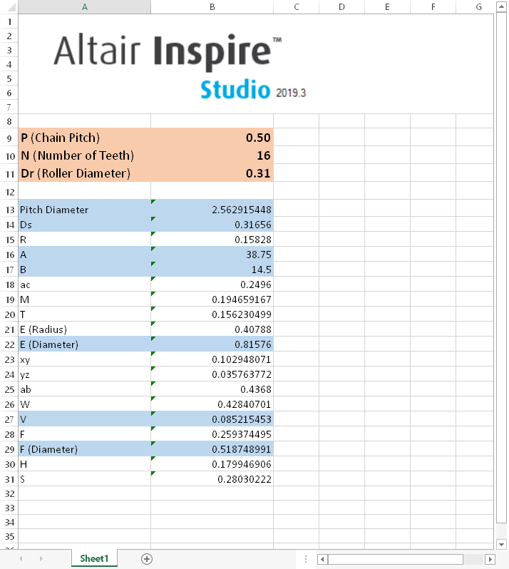 大きなピッチ円の寸法を2.562インチ、小さな円を0.3165インチにします。