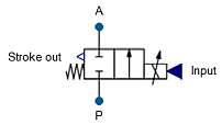 The component SwitchingValve22 is a model of a 2-way valve which will open for input signals equal or above Input threshold to open the valve.